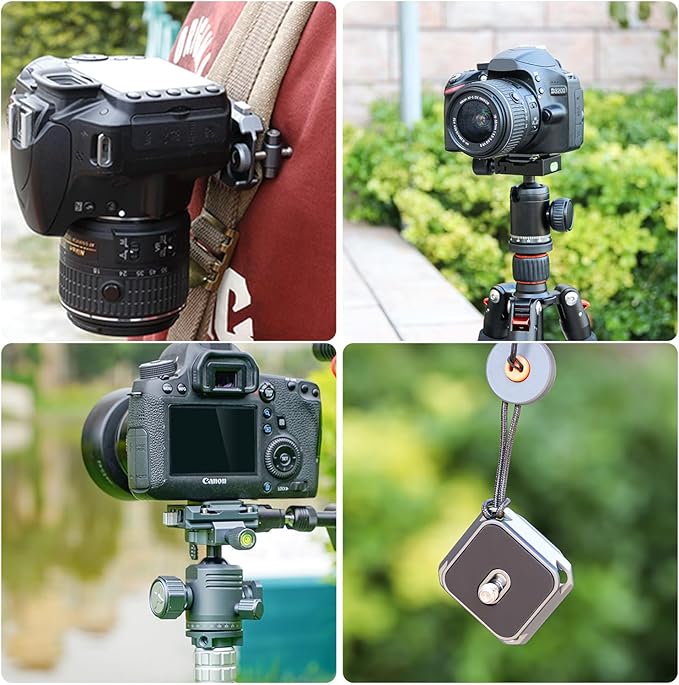 【QB-1/QB-2クイックシュー&アルカスイス対応】:小さなクイックリリースプレートは、Koolehaoda QB-1 バックパックストラップクリップ / QB-2 クイックリリース対応できます。クイックリリースプレートアルカスイス38mm標準で、アルカスイス互換の雲台側パーツ(クランプ)にセットすることができます。