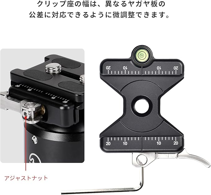SLC-50Bユニバーサルタイプ雅佳クイックマウントクリップ座は、CNC精密加工、硬質陽極酸化処理されたT6061アルミニウムを本体とし、丈夫で耐久性があり、耐摩耗性と耐腐食性に優れています。