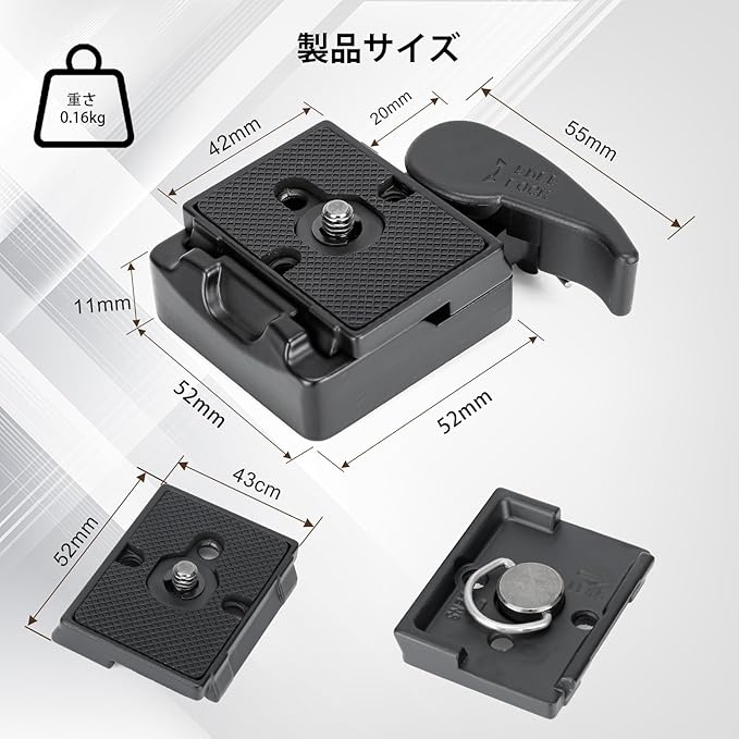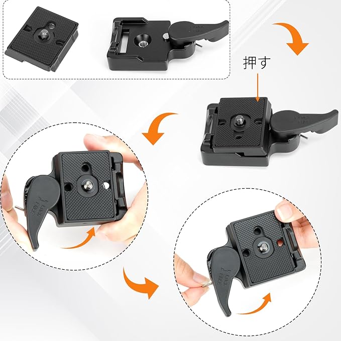 耐荷重:この三脚用クイックリリースプレートは最大3kgの荷重に耐えることができ、スプリング式ロックシステムと遮断弁を備えているため、雲台ベースとカメラをより安定して確実に接続できます。