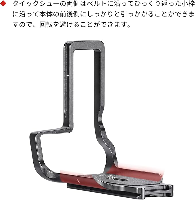 クイックシューの両側はベルトに沿ってひっくり返った小枠に沿って本体の前後側にしっかりと引っかかることができますので、回転を避けることができます。