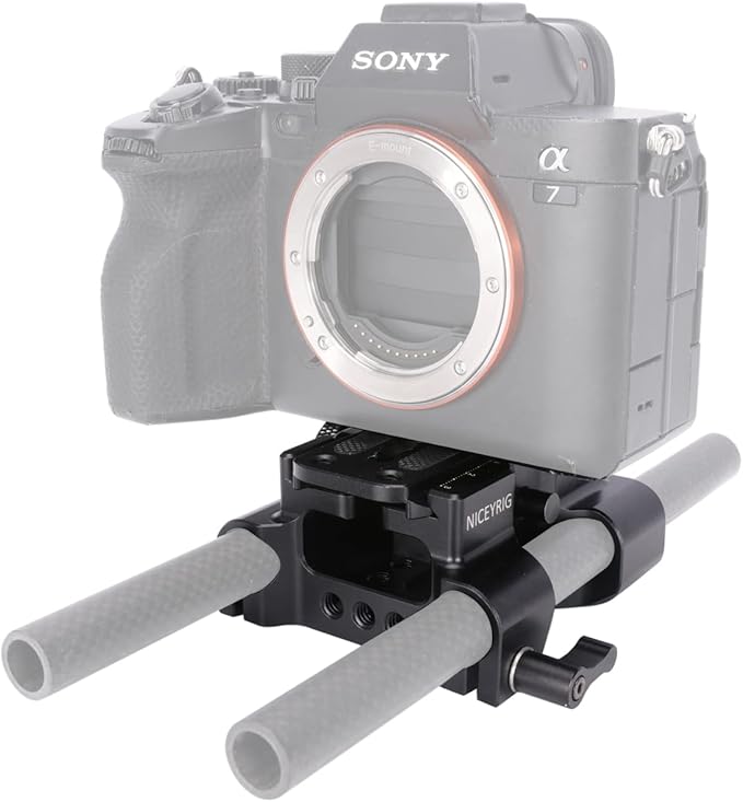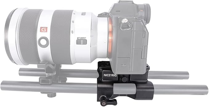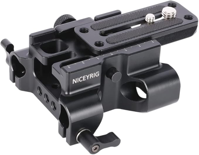 NICEYRIG 汎用ベースプレート クイックリリース カメラプレート 15mmロッドクランプ付き 1/4と3/8インチネジ穴付き ロッドサポート DSLR装備用 QRプレート 着脱容易 ショルダー/三脚に適用 シネマ ほとんどの一眼レフとマイクロカメラに適用ー545