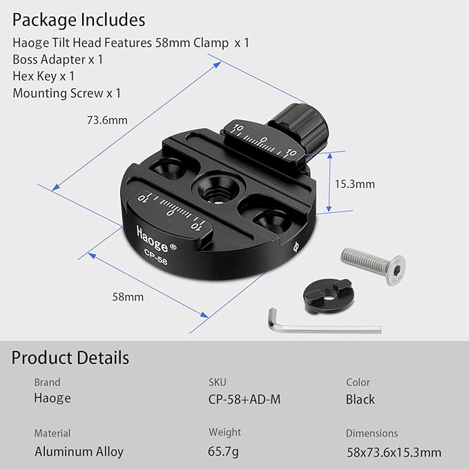 Haogeコンボボスアダプタwith cp-58 58 mm arca-スイス互換クイックリリースクランプ向けManfrotto三脚ボールヘッドクランプ交換用