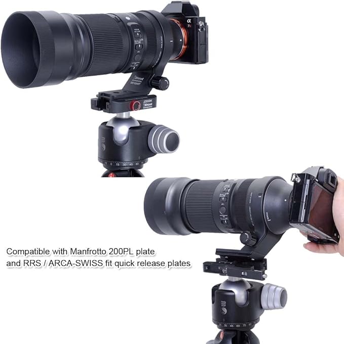 オールメタルクイックセルフロックレバークランプアダプターコンバーター、ノブ付き微調整、Manfrotto 200PL プレートおよびアルカスイスフィットArca-Swiss Fit カメラクイックリリースプレートおよび三脚ボールヘッドとの互換性
