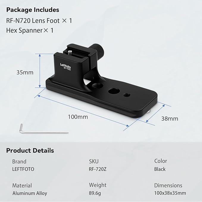 製品について: レンズ交換用フットは、Canon RF 70-200mm F2.8 L (USM ZLenses)用にカスタマイズされています。Arca互換のダブテールにより、Arca-Swiss規格のボールヘッド、クランプ、パノラマヘッドにレンズを取り付けることができます。 1/4インチと3/8インチのネジ穴と下部にQRホールがあります。 両側に2つの安全停止ネジがあり、事故による落下を防ぎます。 仕様: ブランド:LEFTFOTO 材質:アルミニウム合金 カラー:マットブラック RF-720Z交換用レンズフット:Canon RF 70-200mm F2.8 LはUSM Zレンズに対応。 パッケージ内容:交換用フット 1。